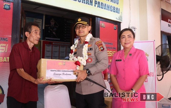 Balisticnews.com KARANGASEM – Masih dalam rangkaian kunjungan kerja ke Polsek Kawasan Pelabuhan Padangbai pada Sabtu (26/4/2025), Kapolres Karangasem AKBP Joseph Edward Purba, S.H., S.I.K., M.H. bersama Ketua Bhayangkari Cabang Karangasem Ny. Ince Joseph menyerahkan bantuan paket sembako kepada keluarga personil Polsek dan warga setempat.