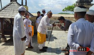 Selain itu, Kapolsek melaksanakan persembahyangan di Pura Luhur Uluwatu serta menyerahkan bantuan berupa alat-alat sembahyang dan sembako kepada pengemong pura sebagai bentuk kepedulian.