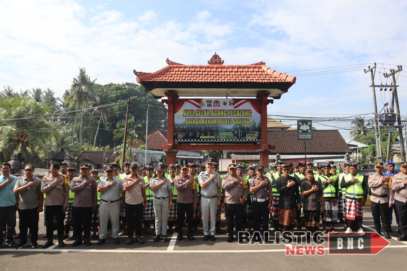 Mangupura, balisticnews.com – Menjelang perayaan Hari Raya Nyepi Tahun Caka 1947 dan Idul Fitri 1446 H Tahun 2025, Kapolres Badung AKBP M. Arif Batubara, SH, SIK, MH, M.Tr.Opsla memimpin apel gelar pecalang yang digelar di halaman Mapolres Badung pada Kamis (13/3/25). Apel ini bertujuan untuk jalinan tali silaturahmi dan sinergisitas antara Polri dan Pecalang dapat menjadi semakin erat untuk mewujudkan bali yang shanti lan jagadhita dalam menjaga keamanan dan ketertiban selama dua perayaan besar tersebut.