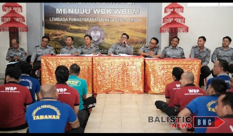 Tabanan, balisticnews.com – INFO_PAS – Kepala Lembaga Pemasyarakatan (Lapas) Kelas IIB Tabanan, Prawira Hadiwidjojo melaksanakan kegiatan internalisasi bagi Warga Binaan yang telah mendapatkan Surat Keputusan (SK) selaku Tahanan Pendamping (Tamping), Selasa (18/03). Kegiatan ini bertujuan untuk mengoptimalkan tugas dan peran tamping pada Lapas Tabanan.