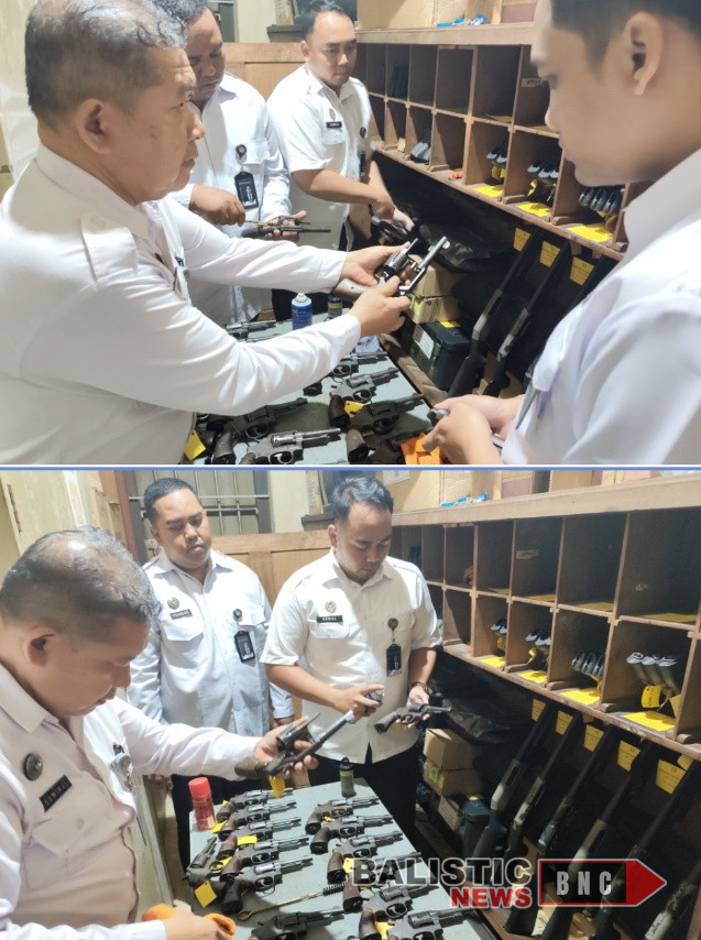 Seluruh senjata api, baik laras panjang maupun laras pendek, serta amunisi, dibersihkan dan diperiksa secara menyeluruh. Pemeriksaan ini mencakup kebersihan senjata hingga kelengkapan jumlah amunisi.