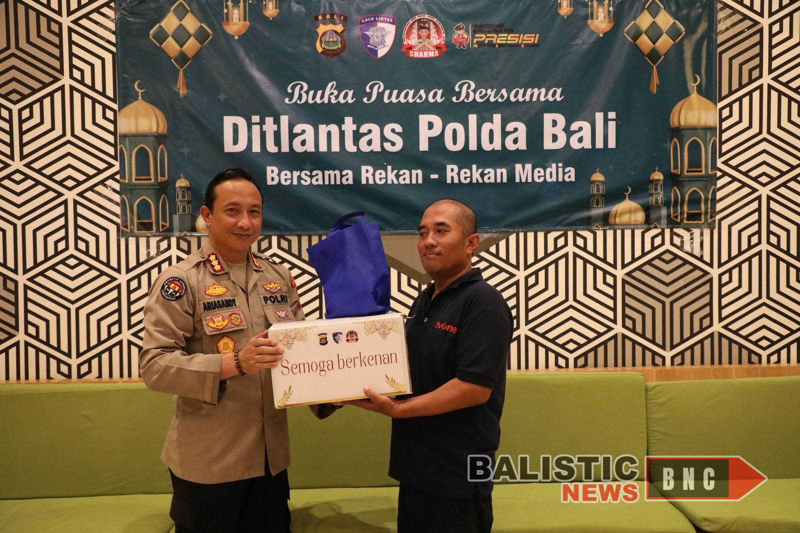 Polda Bali melalui Direktorat Lalu Lintas (Ditlantas) Polda Bali dan Bid Humas Polda Bali menggelar acara buka puasa bersama sekaligus memberikan bingkisan Hari Raya Idul Fitri 1446 H dan Hari Raya Nyepi Caka 1947 kepada wartawan, Sabtu (15/3/2025).