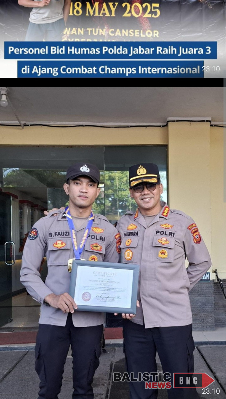 Jakarta. Balisticnews.com – Bripda Syahrul Fauzi Darmawan, personel dari Bidang Humas Polda Jabar, berhasil meraih juara 3 dalam ajang Combat Champs International.