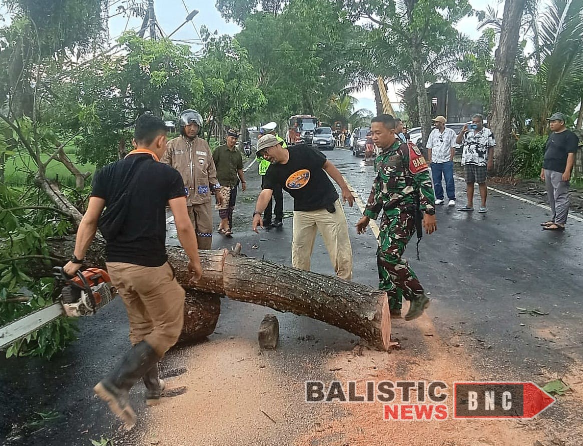 BALI, balisticnews.com – Badung, Telah terjadi pohon tumbang berjenis pohon waru yang diakibatkan oleh hujan dengan intensitas tinggi yang disertai angin kencang, sehingga menutupi akses jalan utama dan menimpa satu bangunan Car Wash di Jl. Raya Denpasar-Singaraja, Desa Sembung, Kecamatan Mengwi, Kabupaten Badung. Minggu, (09/11/25).