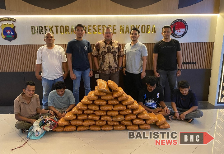Balisticnews.com Padang. Ditresnarkoba Polda Sumatera Barat berhasil menggagalkan peredaran 47 kilogram ganja. Empat tersangka, yakni YYP (26), BD (22), MA (20), dan AD (20), ditangkap di dua lokasi berbeda: Jalan M Yamin, Lubuk Alung, dan Komplek Wisma Indah Lestari, Kota Padang.