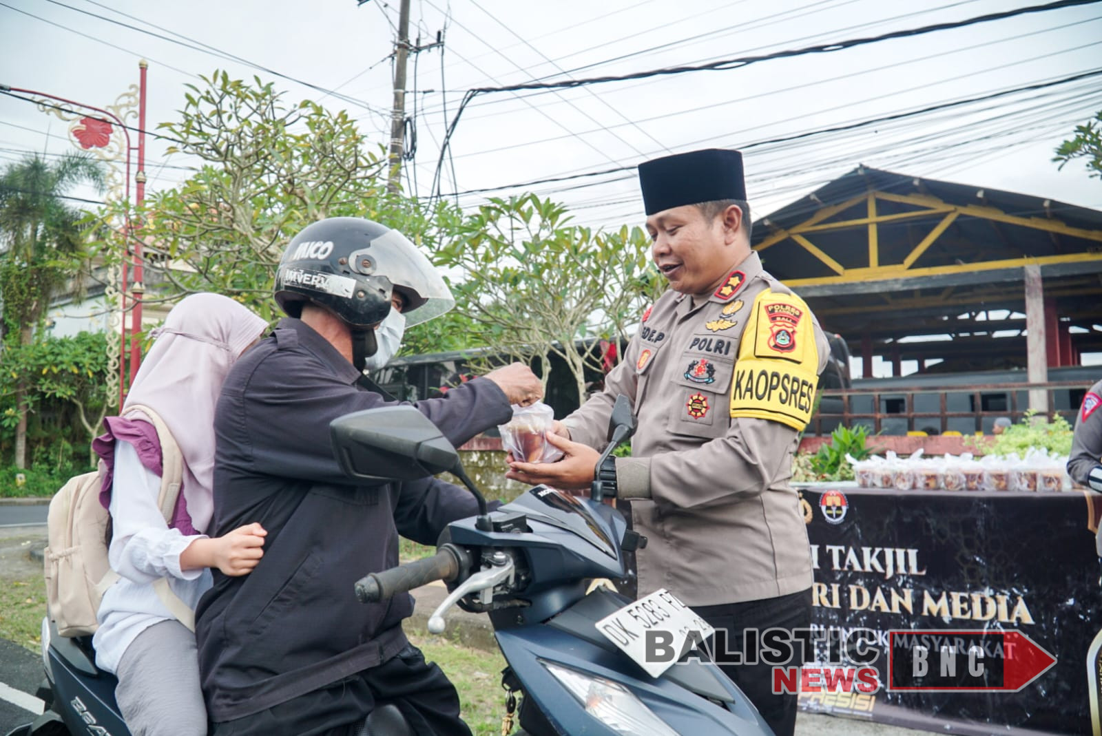 Polres Bangli bersama media berbagi takjil untuk berbuka puasa di bulan suci Ramadan1 dipimpin Kapolres Bangli AKBP I Gede Putra, SH., S.I.K., MH didampingi Waka Polres, Pejabat Utama Polres Bangli1, para jurnalis awak media dan anggota pembagi Takjil bertempat di depan Kantor Samapta Polres Bangli di Jalan Lettu Lila Kelurahan Kawan Kecamatan dan Kabupaten Bangli, Kamis (13/3/25)