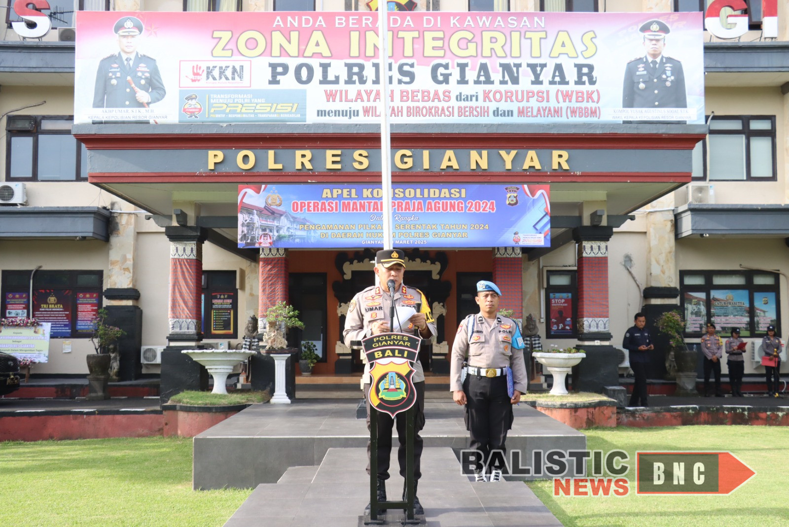 Baliaticnews.com – Gianyar – Polres Gianyar menggelar Apel Konsolidasi Operasi Mantap Praja Agung-2024 di Lapangan Apel Tri Brata Polres Gianyar pada Senin (10/3). Apel ini dipimpin langsung oleh Kapolres Gianyar, AKBP Umar, S.I.K., M.H., sebagai bentuk evaluasi dan apresiasi terhadap pelaksanaan pengamanan Pilkada Serentak 2024 di Kabupaten Gianyar.