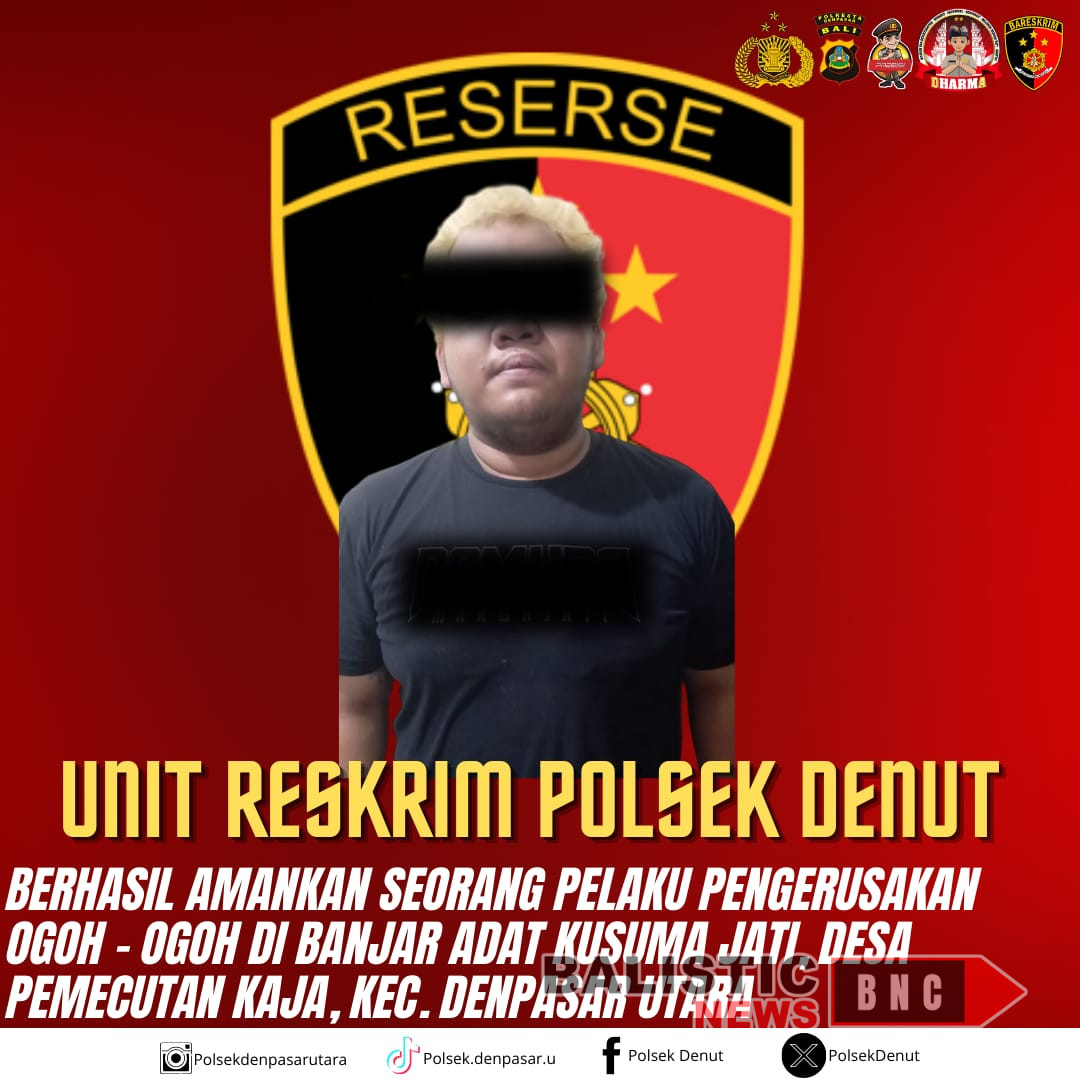 Denpasar – Unit Reserse Kriminal (Reskrim) Polsek Denpasar Utara berhasil mengungkap kasus perusakan ogoh-ogoh di Banjar Adat Kusuma Jati, Pemecutan Kaja, Denpasar Utara. Pelaku, seorang pria berinisial KEEP (26), diamankan setelah tertangkap kamera pengawas (CCTV) sedang merusak ogoh-ogoh bertajuk Raksasa ,Selasa, 11 Maret 2025.