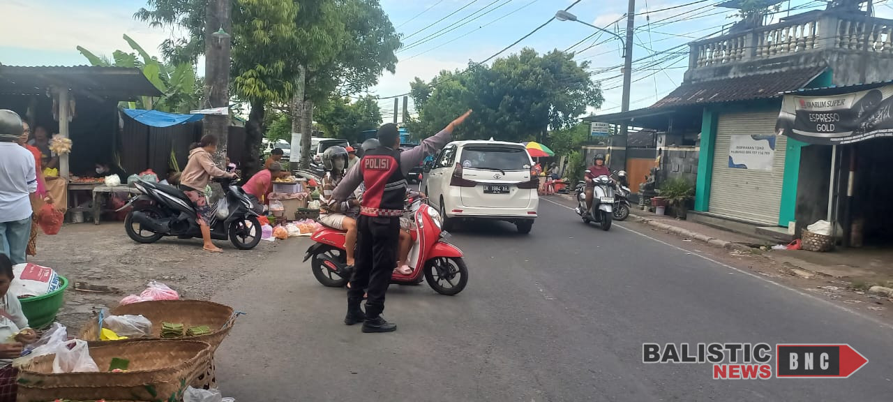 Gianyar, balisticnews.com – Pada hari Rabu, 2 April 2025, pukul 06.30 WITA, personel Polsek Gianyar yang dipimpin oleh Perwira Pengawas (Pawas) Iptu Anak Agung Gede Rai Rupawan melaksanakan kegiatan Pengaturan dan Penjagaan (PH) pagi di depan Pasar Samplangan, yang berlokasi di Jalan Tukad Petanu, Kelurahan Samplangan, Kecamatan Gianyar.