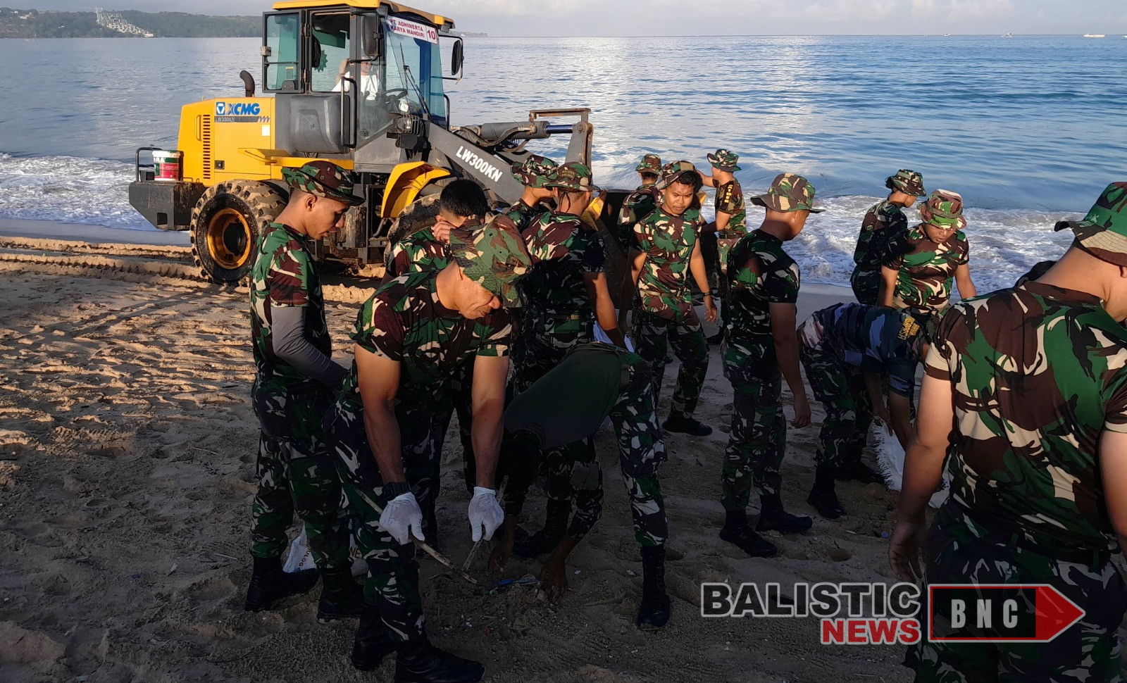 Karya Bhakti Terpadu yang melibatkan berbagai satuan, termasuk Korem 163/WSA, Kodim 1611/Badung, Yonif 900/SBW, Denkav 4/SP, Yonif 741/GN, dan DLHK Badung. Kaur Lat Kodim 1611/Badung, Kapten Inf I Komang Suardika., selaku perwira yang mengatur kegiatan di pantai.