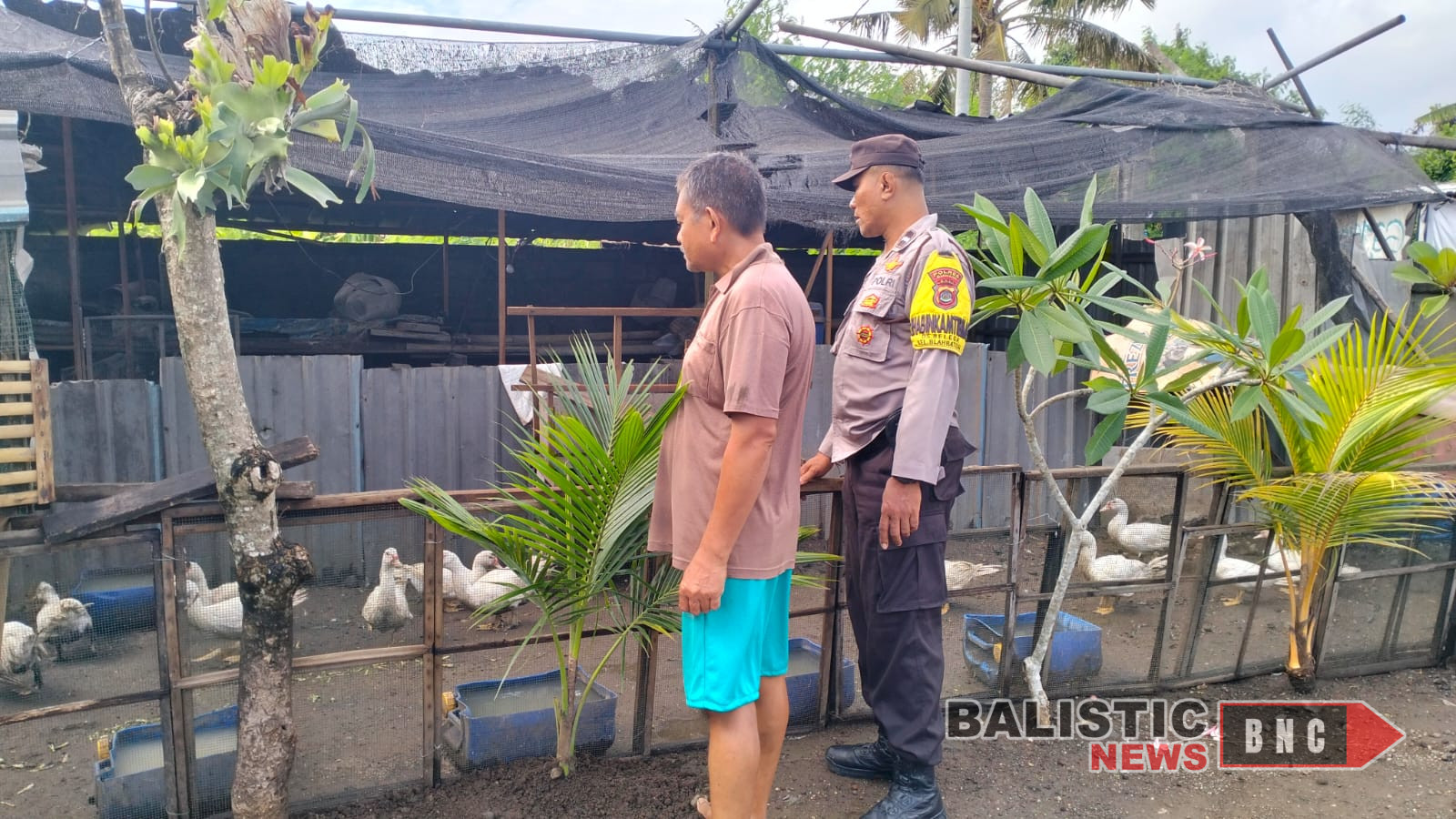 Pada Rabu, 2 April 2025, Bhabinkamtibmas Desa Belega melakukan sambang kepada pemilik ternak, I Made Diana, yang memiliki kandang ternak entok (itik) di Banjar Kebon Kaja, Desa Belega, Kecamatan Blahbatuh, Kabupaten Gianyar. Kegiatan ini dimulai pukul 11.30 WITA dan bertujuan untuk memberikan motivasi kepada peternak tentang pentingnya ketahanan pangan di bidang peternakan, khususnya dalam beternak entok sebagai salah satu sumber protein hewani yang mendukung kebutuhan pangan masyarakat.