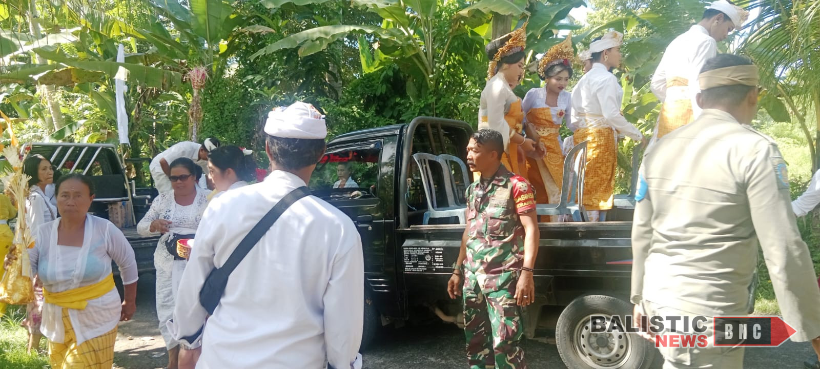 Kodim 1617/Jembrana, Serda Suwardi, bersama Bhabinkamtibmas Bripka I Putu Suryadi, dan Polprades Putu Eka Wiradana, bahu-membahu melaksanakan pengamanan jalannya upacara yang berlangsung dari pukul 09.00 hingga 11.30 WITA.