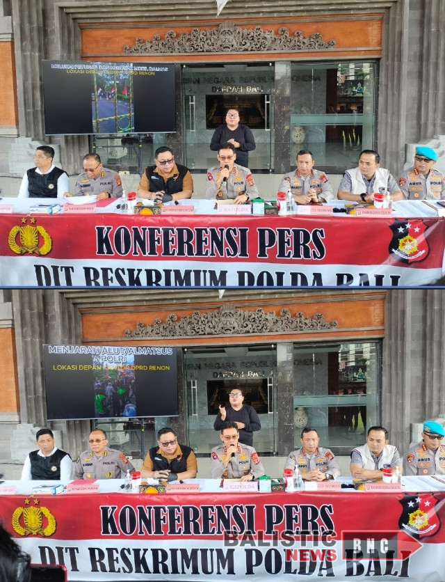 Konfrensi Pers selasa 16 september 2025 didepan para awak media Kapolda didampingi Dirreskrimum, Dirreskrimsus, Dirressiber, Kabid Humas, Kabid Propam dan Kabidlabfor Polda Bali, menyampaikan sesuai hasil penyidikan, pemeriksaan 24 orang saksi, termasuk rekaman CCTV di seputaran TKP dan barang bukti yang ada Polda Bali menetapkan 14 orang tersangka diantaranya 10 orang dewasa dan 4 orang anak-anak.