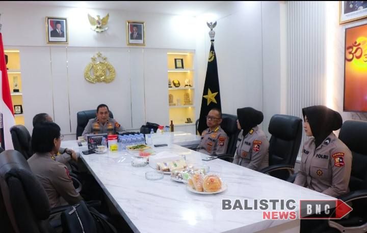 Balisticnews.com Wakapolda Bali, Brigjen Pol. I Komang Sandi Arsana, S.I.K., M.H. didampingi Irwasda Polda Bali, Kombes Pol. Benny Subandi, S.I.K., M.Si. menerima kunjungan Tim Itwasum Polri yang dipimpin oleh Kombes Pol. Muhammad Setyobudi Dwiputro, S.I.K., M.Si., Senin (21/4/2025).