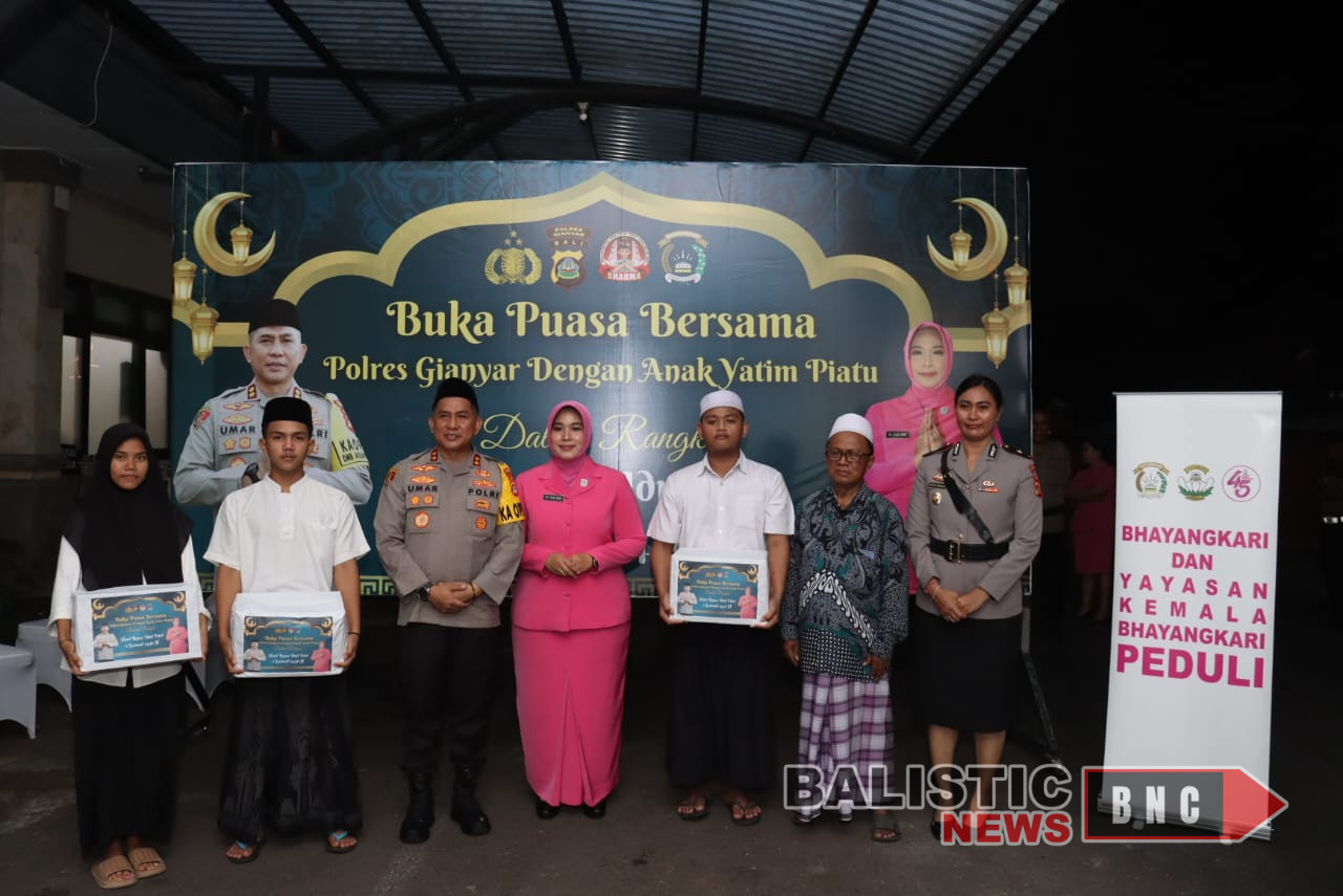 Gianyar, balisticnews.com – Kapolres Gianyar, AKBP Umar, S.I.K., M.H., menggelar kegiatan buka puasa bersama dengan anak yatim piatu di halaman parkir belakang Mapolres Gianyar pada Sabtu (8/3). Acara yang berlangsung khidmat ini dihadiri oleh jajaran pejabat utama (PJU) Polres Gianyar, para Kapolsek, pengurus Bhayangkari Cabang Gianyar, serta 20 anak yatim piatu.