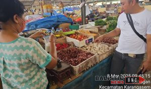 Balisticnews.com – Sat Reskrim Polres Karangasem melaksanakan pemantauan harga pangan dan stok kesediaan pangan di Pasar Amlapura.