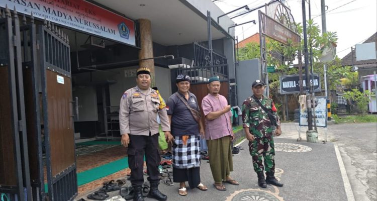 Bhabinkamtibmas Bersama Babinsa dan Pecalang Kawal Ibadah Sholat Jumat di Yayasan Madya